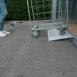 Cette rampe est spécialement conçue pour nos conteneurs démontables, mais peut également être utilisée comme rampe dans d’autres situations. Cette rampe est idéale si, par exemple, vous souhaitez atteindre le conteneur avec un chariot à roues. La rampe est facile à utiliser car le produit est léger et, grâce au relief de la rampe, les roues ont une adhérence supplémentaire pendant la conduite.